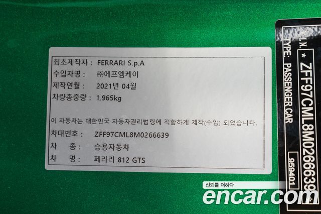 Ferrari 812 из Кореи Encar